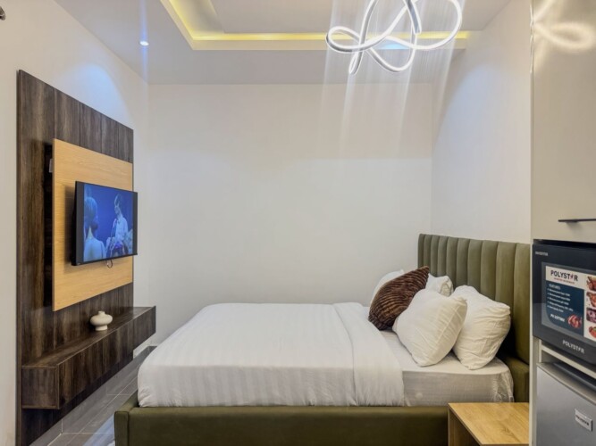 A modern studio apartment designed for comfort and convenience, offering a peaceful stay in the heart of Oniru Estate, Victoria Island.